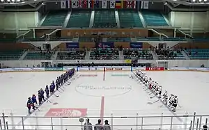 Catholic Kwandong University Gymnasium is located on the grounds of Catholic Kwandong University in Gangneung, Gangwon-do, South Korea. During the 2018 Winter Olympics, it is one of the two venues for Ice Hockey.[1] The official name as the Winter Olympic venue is Kwandong Hockey Centre (Korean: 관동 하키 센터, romanized: Gwandong Haki Senteo).