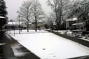 Since 2007, the school has instituted food services programs such as switching to washable dinnerware in the cafeteria and sourcing food from local farms within 150 miles radius.[30] Within one year the school reduced its landfill contributions by 32.49 tons, and in 2016, after realizing that their recycled plastic was making its way to landfills, two students convinced the school to stop selling bottled water.[31] In 2020, students and community partners removed 25 truckloads of invasive species from 2.5 acres of school property and planted over 2,000 native shrubs and trees.[32]