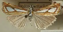 Catoptria osthelderi is a species of moth of the family Crambidae described by Gustave de Lattin in 1950. It is found in Europe. The imago can only be distinguished from Catoptria permutatellus by microscopic examination of the genitalia.
