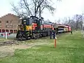 Trains are powered by Alco RS-1 401 (ex-GMRC 401), and consist of six flatcars converted to passenger use; a refurbished caboose 675 (ex-PRR 477672); five ex-LIRR P72 coaches and former Norfolk and Western PM coach 1727.