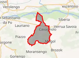 Cavagnolo borders the following municipalities: Brusasco, Monteu da Po, Lauriano, Moransengo, and Tonengo.