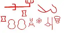 The rock painting of the Yogimatha (10th Millennium BCE)[30] of Nuapada District of Odisha which was an older script in India. The script ‘Ga’, and ‘o’ (tha) was discovered from Yogimatha rock painting, this painting saw a person with four animals and write some alphabet. That painting created a word Like "Gaitha" (very popular Odia word at present ‘Gotha’ or ‘group’ in English). This art closely related to this alphabet. This alphabet has similarity to Dhauli and Jaugada Inscription's script of Ashok. It was the ancient form of Indian script and it is the first glimpse of possible origin of the Odia language and script.[31][32]