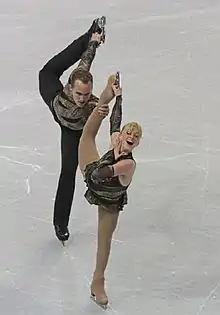 Denney/Coughlin made their season debut at the 2012 Nebelhorn Trophy, winning the silver medal.[14] They won bronze medals at both of their Grand Prix assignments, the 2012 Skate America[15] and the 2012 Rostelecom Cup. On December 4, 2012, Coughlin underwent surgery to repair a torn labrum in his left hip.[16][17] As a result, the pair missed the 2013 U.S. Championships but they submitted a petition to be considered for the U.S. team to the 2013 World Championships.[18] They were named in the U.S. team to the event but decided not to compete.[19][20] Coughlin was off the ice for about nine weeks.[21]