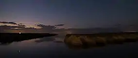 Cedar Island National Wildlife Refuge, located in Carteret County, North Carolina, is on the end of a peninsula marking the southern end of Pamlico Sound. The refuge lies five miles (8 km) east of the Atlantic Ocean and about 40 miles (64 km) northeast of Beaufort, North Carolina. Established in 1964, the refuge consists of approximately 11,000 acres (45 km2) of irregularly flooded, brackish marsh and 3,480 acres (14.1 km2) of pocosin and woodland habitat. The dominant marsh plants include black needlerush, saltmarsh cordgrass, saltmeadow hay, and saltgrass. The woodland areas are dominated by loblolly, longleaf and pond pine. Live oak is also abundant on some upland sites. The marsh and surrounding waters provide wintering habitat for thousands of ducks and nesting habitat for colonial waterbirds.