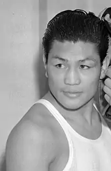Ceferino Montano Garcia (August 26, 1906 – January 1, 1981) was a champion boxer born in Naval, Biliran, Philippines. He holds the most victories ever achieved by a Filipino boxer and is also the only boxer from the Philippines to become world champion in the middleweight division.[3] Garcia is commonly credited to as the first well known user of the bolo punch, which was later popularized by Cuban fighter Kid Gavilán.[4] He was inducted into the Ring Magazine Hall of Fame in 1977 and the World Boxing Hall of Fame in 1989.[5]