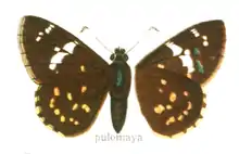 - Beccaloni, G.; Scoble, M.; Kitching, I.; Simonsen, T.; Robinson, G.; Pitkin, B.; Hine, A.; Lyal, C., eds. (2003). "Celaenorrhinus pulomaya". The Global Lepidoptera Names Index. Natural History Museum. Retrieved April 19, 2018.