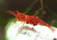 Many species of Caridina freshwater shrimp and parathelphusid freshwater crabs (Migmathelphusa, Nautilothelphusa, Parathelphusa, Sundathelphusa and Syntripsa) are endemic to Sulawesi.[82][83] Several of these species have become very popular in the aquarium hobby, and since most are restricted to a single lake system, they are potentially vulnerable to habitat loss and overexploitation.[82][83] There are also several endemic cave-adapted shrimp and crabs, especially in the Maros Karst. This includes Cancrocaeca xenomorpha, which has been called the "most highly cave-adapted species of crab known in the world".[84]
