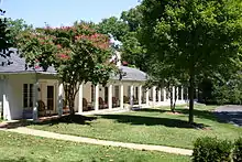 The wooded campus has a large mansion as the director's residence, a "stoa" with five apartments for the fellows without families, three cottages for the fellows with families, two subdivided cottages serving as double residences, five guest-rooms to accommodate visiting scholars, and one cottage that has been transformed into a multi-media conference facility.[4]