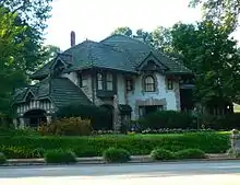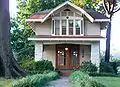 The most prevalent architectural forms found in the district are the American foursquare and bungalow. Principal styles include Colonial Revival, American Craftsman, Eclectic, Mediterranean Revival, Mission, Neoclassical, Prairie School, Queen Anne, Tudor Revival, and Shingle style. While this architecture is fairly common, the superior quality of design, workmanship, materials and details is significantly uncommon. The mix of architectural styles contained in a typical district block achieves a very strong compositional harmony because virtually all houses adhere to the same rules of massing, scale, and cornice height setback and lot size.[24]