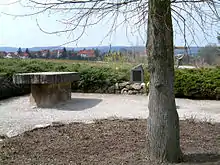 The central point shifted several times during the country's eventful history. Today Niederdorla in the state of Thuringia claims to be the most central municipality in Germany. A plaque was erected and a lime tree planted at 51°9′48.15″N 10°26′51.66″E after the 1990 German reunification.[1] The point was confirmed as the centroid of the extreme coordinates by the Dresden University of Technology. Niederdorla also comprises the centre of gravity (equilibrium point) about 4.5 km (2.8 mi) to the southwest. Other municipalities competing are Krebeck in Lower Saxony and Edermünde in Hesse, as well as the village of Landstreit near Eisenach.