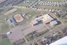 During the early morning hours of February 6, 2008 a tornado ripped through the school, damaging the football field, freshman center, main gym, and main entrance.[3]
