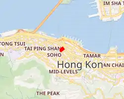 It is located between Jubilee Street, Queen Victoria Street, Queen's Road Central and Des Voeux Road Central. By its side is the first public female toilet and first above-ground toilets in Hong Kong.