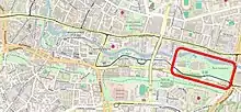 - to the north, it borders a promenade along the river;
