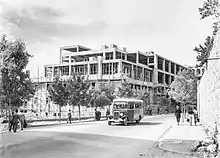 The building was built as General Post Office during the British Mandate, one of three government buildings in this area. Construction was between 1934 and 1938 to the design of the main architect of the public works department of the British Mandate, Austen Harrison and the Government architect Percy Harold Winter.[1] The total cost was £120,000[1] for the building to house the administrative and engineering staff of Palestine Post, Telegraph & Telephone, the Jerusalem central telephone exchange and the Jerusalem post office.[1] The opening ceremony was held on 18 June 1938, in the presence of the High Commissioner and hundreds of guests. The building is typical of the 'Mandatory' style.