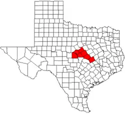 ![]() Map of Texas highlighting counties served by the Central Texas Council of Governments | |