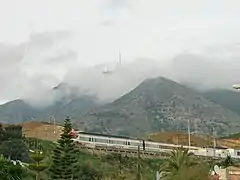 Cercanías Málaga is a commuter rail service between central Málaga, Spain, and towns in the province. The network consists of 70 kilometres (43 mi) of track, with two lines and 24 stations in operation. The trains are powered by overhead lines and run on broad Iberian gauge track.