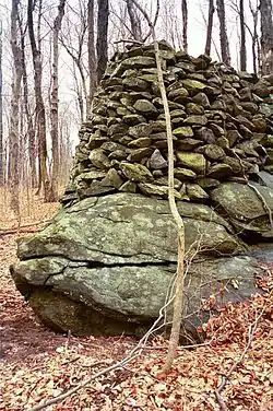 Ceremonial Stone Landscapes is the term used by USET, United Southern and Eastern Tribes, Inc.[1], a nonprofit, intertribal organization of American Indians, for certain stonework sites in eastern North America. Elements often found at these sites include dry stone walls, rock piles (sometimes referred to as cairns), stone chambers, unusually-shaped boulders, split boulders with stones inserted in the split, and boulders propped up off the ground with smaller rocks. While neither the age of these sites nor the idea of their creation by indigenous peoples has been accepted generally, interest in the sites is increasing. This interest is generated in part by USET's Resolution #2007:037,[2] entitled Sacred Ceremonial Stone Landscapes Found in the Ancestral Territories of United Southern and Eastern Tribes, Inc. Member Tribes.