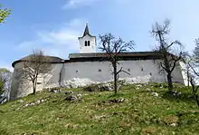 The local church, built in an isolated location south of the settlement, is dedicated to Saint Nicholas and belongs to the Parish of Št. Jurij pri Grosupljem. In its core it is a 13th-century Romanesque building that was restyled in the Baroque. It has a well-preserved late 15th-century defence wall, built as a refuge against Ottoman raids.[5]