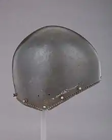 A cervelliere (cervelière, cervelliera;[1] Latin: cervellerium,[2] cerebrarium,[3] cerebrerium, cerebotarium[4]) is a hemispherical, close-fitting[5] skull cap of steel or iron.[3] It was worn as a helmet during the medieval period.
