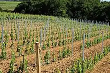 Facing south-southeast, this Entre-Deux-Mers vineyard has a soil consisting mainly of clay and gravel.[11]