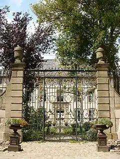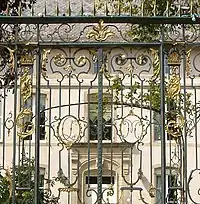 The gate was created by the famous ironworker Jean Lamour, who also made those that surround Place Stanislas in Nancy. The initials of the first owner appear in the high part of the gate (François-Léopold Masson), and those of the Collinet de la Salle family appear in the low part. It is now enough to examine this gate to imagine the destination of the castle. On each side of the central parts, there is a succession of rubbles, violins, harps, fifres, bagpipes, horns and horns of hunting. The first instruments return to the pleasures of the music, or even the dance, the last seem invited to discipline hunting. By their decoration, the piles that support the gate give a movement of solemn base to the unit. During World War I in 1914, this gate would have been dismounted and hidden in a secure place for fear that the German enemy might steal it.