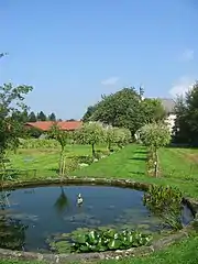 Located opposite the castle, at the top of a staircase, the park extends on a surface from one hectare. It was used like a pleasure garden. In its center, a stone basin formed the starting point of four alleys (north, south, east, west). It heads a real formal garden. Today, there is a vegetable garden, a few vines, as well as a sheepfold and some animals.