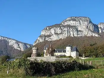 The castle was built at the foot of Mont Pennay, on a rocky outcrop, in a bend of the Leysse river.