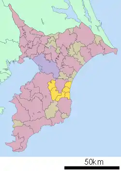 Chōsei District (長生郡, Chōsei-gun) is a district located in Chiba Prefecture, Japan. As of September 2010, the district has an estimated population of 63,382 and a density of 279 persons per km2. The total area was 226.97 square kilometres (87.63 sq mi). The district formerly included all of the city of Mobara and a small portion of the city of Isumi.[1][2]