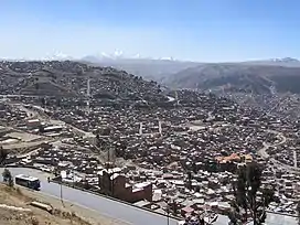 ![]() A view of La Paz. Chacaltaya and Ch'iyar Qirini lie in the background | |