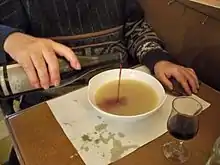 Faire chabrot or faire chabròl is an ancient Occitanian custom whereby at the end of a soup or broth, one adds red wine to the bowl to dilute the remnants and brings it to the lips to drink in big gulps.[1]