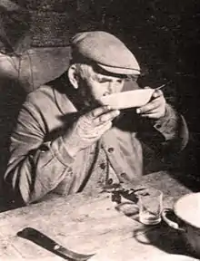 Catalan Jaume Fàbrega, born in 1948, indicates in Cuina del país dels càtars that while young, he witnessed at home lo cabròt.[5] Roland Manoury, musicologist and poet of Auvergne, created a march of glory for chabrot that is traditionally accompanied by accordion. Its refrain asserts:[6]