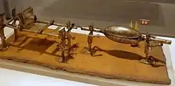 The wood carvings done by the Chancay are characterized by their simplicity, sobriety[2] and use of shapes from nature, quite opposed to the sophistication of their textile art. From wood they produced implements of daily use, statues and items for decoration, some of which they painted.[2] Using the wood from their coastal desert the Chancay carved large and small objects, finely engraved with motifs reflecting the marine environment, such as seabirds and boats.