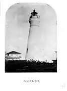 A new, iron skeleton tower with a 3rd order Fresnel lens (focal plane 102 feet (31 m)) was erected in its place in 1895.[5] The light figured in a case before the United States Supreme Court. After a barge carrying fertilizer ran aground, it was determined that the Coast Guard had been negligent in maintaining the proper operation of the light. The Court held that the United States was liable.[6] The light was added to the National Register of Historic Places in 1986 as Chandeleur Light.