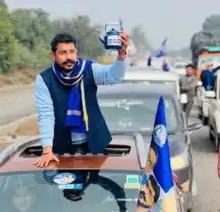 Azad Samaj Party is an Indian political party formally launched on 15 March 2020 by Ravan.[18][19][20][21] It is significant that the announcement was made on the 86th birth anniversary of Kashi Ram, the founder of the Bahujan Samaj Party.[22] The sister of the founder of that party, Sarwan Kaur, planned to join the Azad Samaj party.[23] The party planned to contest every seat in Bihar in the 2020 Bihar Legislative Assembly election.[24] Bhim Army founder Chandrashekar Azad Ravan announced to join the Progressive Democratic Alliance (PDA) led by Jan Adhikar Party (Loktantrik) of Rajesh Ranjan alias Pappu Yadav with other regional political parties to contest the Bihar assembly election 2020.[25] Much of the party's popularity comes from the Dalit and Scheduled tribes.[26]