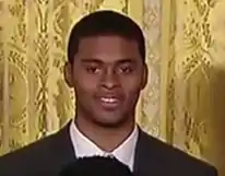 ![]() Behanan visits the White House in 2013 for a ceremony honoring Louisville's 2013 national championship. | |
