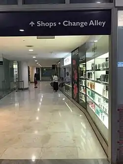 Change Alley is an air-conditioned shopping arcade in the financial district of Raffles Place in Downtown Core planning area of Singapore. Flanked by the skyscrapers Chevron House and Hitachi Tower, it is an alley that links Raffles Place and Collyer Quay. It was renovated to what it is today in 1989,[1] replacing the old Change Alley whose history dates back as far as 1819.
