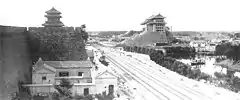 The Chaoyang Gate (the Gate Facing the Sun) was the main gate of the East City. The gate was demolished, along with the walls and moat of the East City in the 1950s[1] and replaced with the 2nd Ring Road (Beijing) where the moat and walls had been, and an elevated roundabout-bridge where the gate had been.