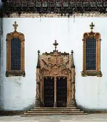 The project belonged to Marcos Pires, who designed the naturalistic Manueline side door, although he died in 1521 and his work had to be finished by Diogo de Castilho. The entrance to the chapel is through a neo-classical door made by José de Carvalho in 1780.
