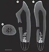 He made a number of seemingly important fossil finds. Amongst these were teeth from a previously unknown species of mammal, later named Plagiaulax dawsoni in his honour; three new species of dinosaur, one later named Iguanodon dawsoni; and a new form of fossil plant, Salaginella dawsoni.[3] The British Museum awarded him the title of 'Honorary Collector.' He was then elected fellow of the Geological Society for his discoveries and a few years later, he joined the Society of Antiquaries of London. Dawson died prematurely from pernicious anaemia in 1916 at Lewes, Sussex.[2]