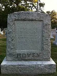 After the war, Hovey and his wife lived in Washington, D.C. Having once briefly studied law, he became a successful pension lobbyist and practicing attorney. He died in Washington D.C. on November 17, 1897 and was buried with full military honors in Arlington National Cemetery.[1]