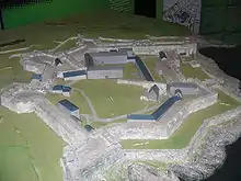 Charles Fort was built on the site of the ruins of an earlier stronghold known as Barry Óg Castle, at Rincurran.[4] The Ringcurran defences had featured prominently during the Siege of Kinsale in 1601.[5]