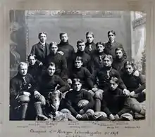 ![]() 1898 Kalamazoo football team, MIAA champions; Hall is standing on the back row on the far right | |