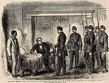 President James Buchanan appointed Faulkner Minister to France in 1860. He served until the onset of the American Civil War, newly elected President Abraham Lincoln having replaced him with William L. Dayton. When Faulkner returned across the Atlantic Ocean to settle matters in Washington D.C., he was arrested in August 1861 on charges of negotiating sales of arms for the Confederacy while in Paris, France. Initially imprisoned in Washington, a prisoner exchange was contemplated of Faulkner for Henry S. McGraw, formerly Pennsylvania's state treasurer and imprisoned in Richmond while seeking to recover the corpse of Col. Cameron,[18] but McGraw was released and Faulkner instead transferred to Fort Warren in Boston Harbor. An exchange was then contemplated for Alfred Ely, a New York congressman who captured at the First Battle of Bull Run, but Confederate President Jefferson Davis wanted to make Faulkner's arrest an example before the civilized world. Union forces allowed Faulkner a 30-day parole to plead his case in Richmond, whereby Davis reluctantly consented and Faulkner was formally released in December and allowed to return to Martinsburg.[19][20]