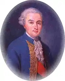 On 22 October 1780 the Naval Minister wrote to d'Hector, stating "The confidence which I know is your due will perhaps seem a burden in that I give you an excess of it, but, as it is only in the King's service, I do not think that you will find it indiscrete."[3] At the request of the duc de Castries he was promoted to lieutenant general on 14 August 1782 and granted the red sash of the Order of St Louis (with a 3000 livres pension from the Order) on 1 January 1782, two promotions which made his fellow general officers jealous.[4][5]
