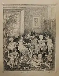 Many thoughts go through my mind as I look at Fiscus. First, the quality of his work is very high and thus his early death is an even greater tragedy. Second, in terms of style, he is a young artist experimenting to find his own particular voice. "Stone Cabin" is very close to the Realist style of the French artist Francois Millet. However, looking at his work overall, I see a blending of realism mixed with fantasy that suggests he must have been inspired by the English Pre-Raphaelites. Most especially, compare "A Dream of Elfand" and "Wide Awake" to work by Richard Dadd (whose best-known work is "The Fairy Feller's Masterstroke", c. 1864.)[28]