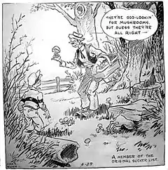 After high school, Kuhn worked in a plow factory, laboring ten hours a day, six days a week. He moved on to become a freight hustler, mill hand, steel tank worker and sign painter before enrolling at the Chicago Academy of Fine Arts (1913–14), where he studied cartooning in a class taught by Frank King. He soon landed an art job paying $10 a week. During World War I, as Kuhn put it, he "shoveled coal and chow" as a Navy fireman on the U.S.S. Connecticut.[2] He also visited France in World War I. During the other travels of his youth, he spent time in the Canadian harvest fields and "stepped over the border into old Mexico."