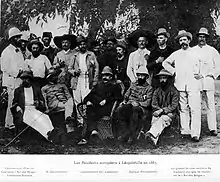 On 7 March 1883 Lieutenant Liebechts embarked in Liverpool on the Biafra with two batteries of mountain artillery.[2] He transported the guns to the upper Congo River. In Léopoldville he found Henry Morton Stanley organizing a large expedition to found two new posts. He joined the expedition with one of his pieces, a Krupp cannon. In Bolobo Stanley resolved a dispute between the staff of the station and a local chief, then gave command to Liebrechts. The local people wanted the Europeans to leave, and in November 1883 burned down the station's buildings.[1]