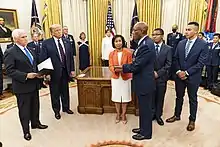 Charles Quinton Brown Jr.[1] (born 1962) is a United States Air Force four-star general who serves as the 22nd chief of staff of the Air Force. He is the first African American to be appointed as chief of staff and the first African American to lead any branch of the United States Armed Forces. Brown assumed office from Gen. David L. Goldfein, who had served as chief of staff since 2016, in a ceremony at Joint Base Andrews on 6 August 2020.