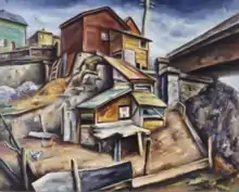 Rosen was starting to feel that Impressionism belonged to the past, and from 1916 began to experiment with other styles.[3] He taught at the Art Students League of New York summer school in Woodstock, New York in 1918.[5] He was an instructor and then director of the summer school until 1921.[1] One of Rosen's students there was the Canadian André Charles Biéler.[7] In 1920 Rosen moved permanently to Woodstock with his wife and their two daughters.[5] He became a close friend of the painters George Bellows and Eugene Speicher. By 1920 Rosen had adopted a cubist-realist style (later identified as Precisionism) that characterized his work for the remainder of his life.[8]
