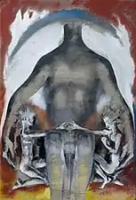 Another Times review likened Sims' last works to those of El Greco, "using his expedient of torn atmospheric forms for emotional purposes."[22][23] The works were also compared to those of William Blake,[24][25] Kandinsky,[13] and the Italian Futurists.[26]